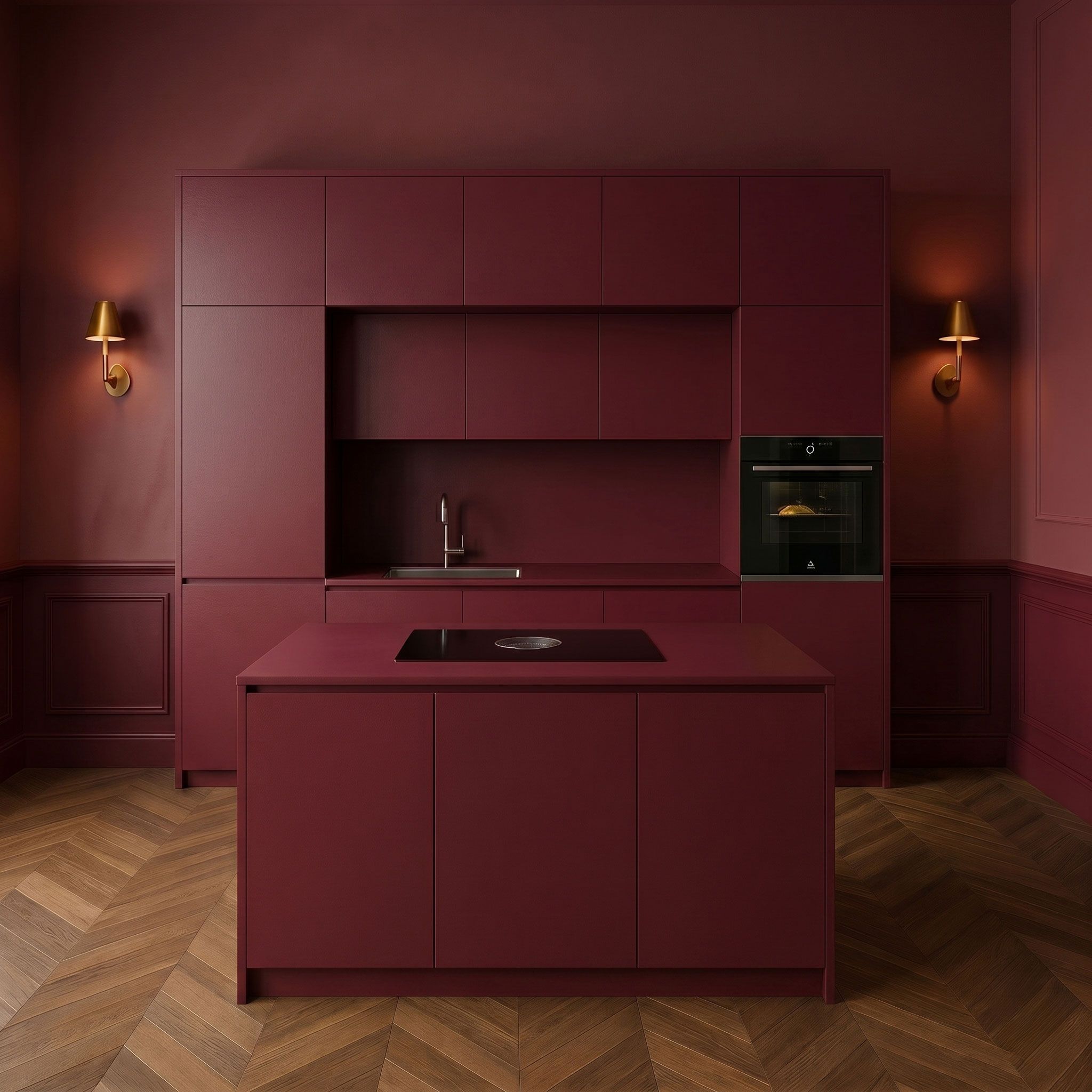 Più profondo e sofisticato, il bordeaux crea un effetto elegante e contemporaneo. È ideale per ambienti ampi e ben illuminati, dove il colore può esprimersi senza appesantire.