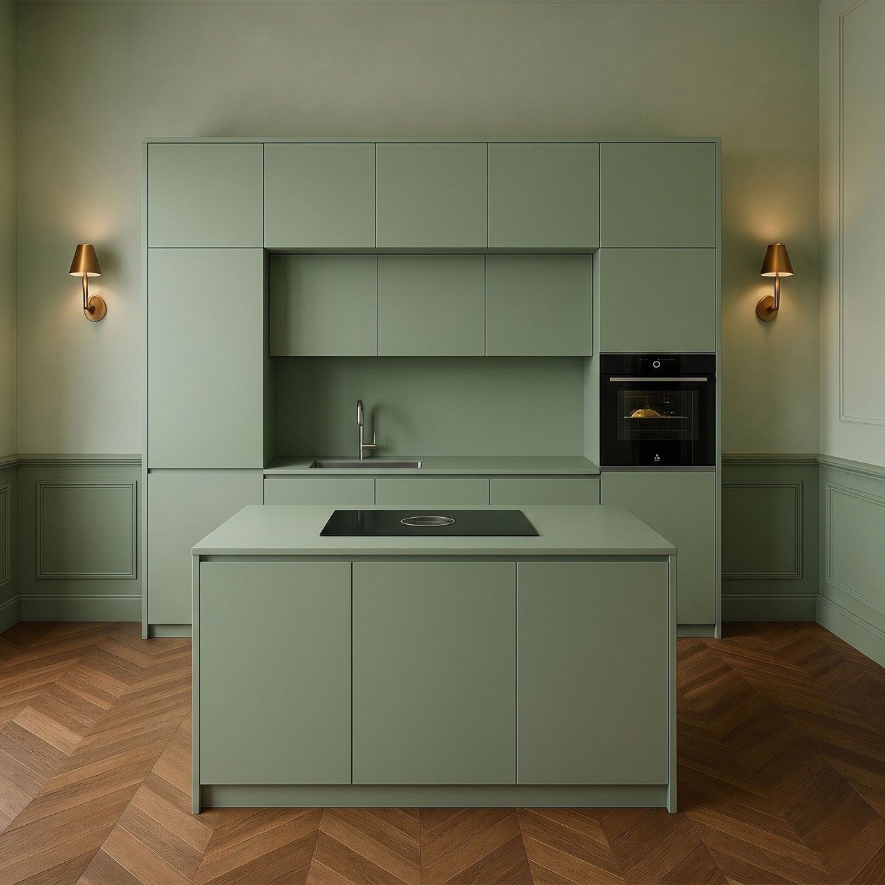 Cucina verde salvia